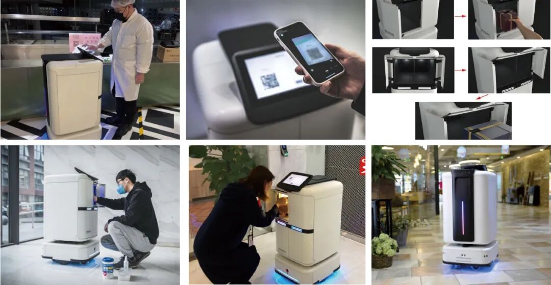 将机器人负责的楼栋和路线写入程序,使业主无需接触外卖员、快递员, 同时在机器人旁边附上消毒液,让业主拿完后可以立即消毒。