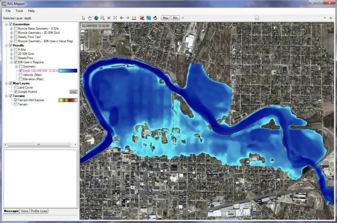 HEC-RAS(Hydrologic Engineering Center's River Analysis System)是由美国陆军工程兵团水文工程中心开发的水力分析软件包,可以对自然或者人造河道进行一维二维水力计算分析,主要用于明渠河道水流分析和洪泛平原区域的确定。