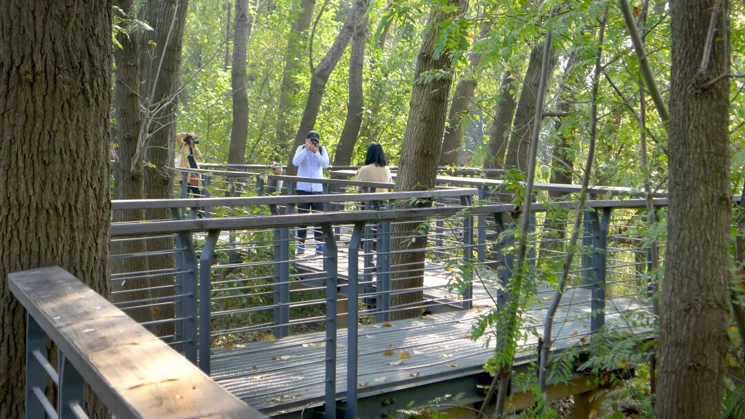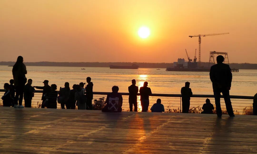 ◎来自城市各处的游客齐聚于此,在夕阳的余晖洒向壮美的长江之时,共赏这一新落成的自然美景。