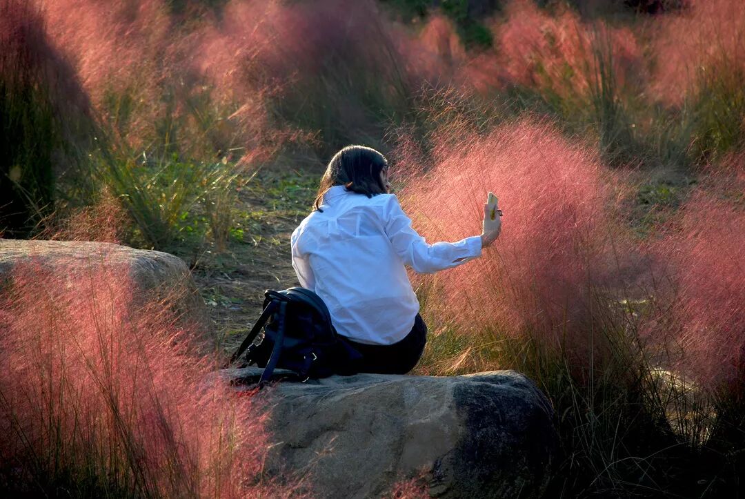 ◎在长江——这条世界上最繁忙的河流衬托下,大片的粉黛乱子草如梦如幻,宛如一副壮观的粉色云霞图。