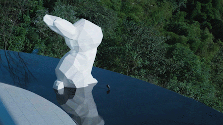 “萌酷”IP 植入与情景化故事体验,从《爱丽丝梦游仙境》的故事中获取灵感,将其中“三月兔”作为本项目IP形象,我们希望这个项目在涪陵有一个非常重要的记忆点,而不仅仅描述自然环境。“三月兔”贯穿着整个项目,从主入口到公共开放的公园,再到核心展示区,通过IP化的雕塑,与人特别是儿童的距离拉近,唤起人们对生态居住及尊重自然的共情的体验。