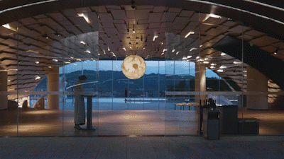 无边界的空间发挥着它的无限可能,同时潜移默化地塑造着一种平等、共享的人文精神。整个项目谦逊而包容,人们可以在室内与室外之间穿梭,亲近自然、感受艺术。透明的落地玻璃、山水天地、延伸向自然的山水廊桥,都消隐在这片自然之中,空间的灵活性使它可以适应各种需求,不断发展变化。
