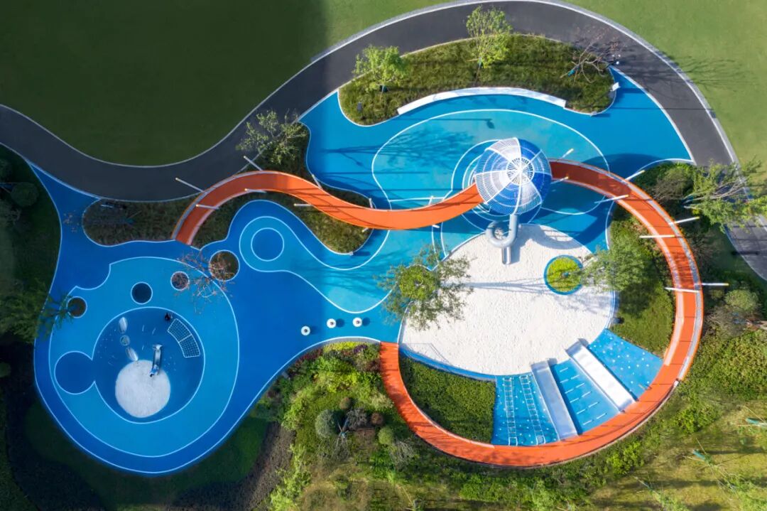 前场的室外公园邀请人们自由地漫步其间。回归自然,提供奔跑、休憩的空间,也可以举办室外音乐节等活动。星际乐园为孩子们创造了一个在大自然中快乐玩耍的天地,在空间布局以及设计愿景上也是希望展现到星空小镇的未来体验的可能性。