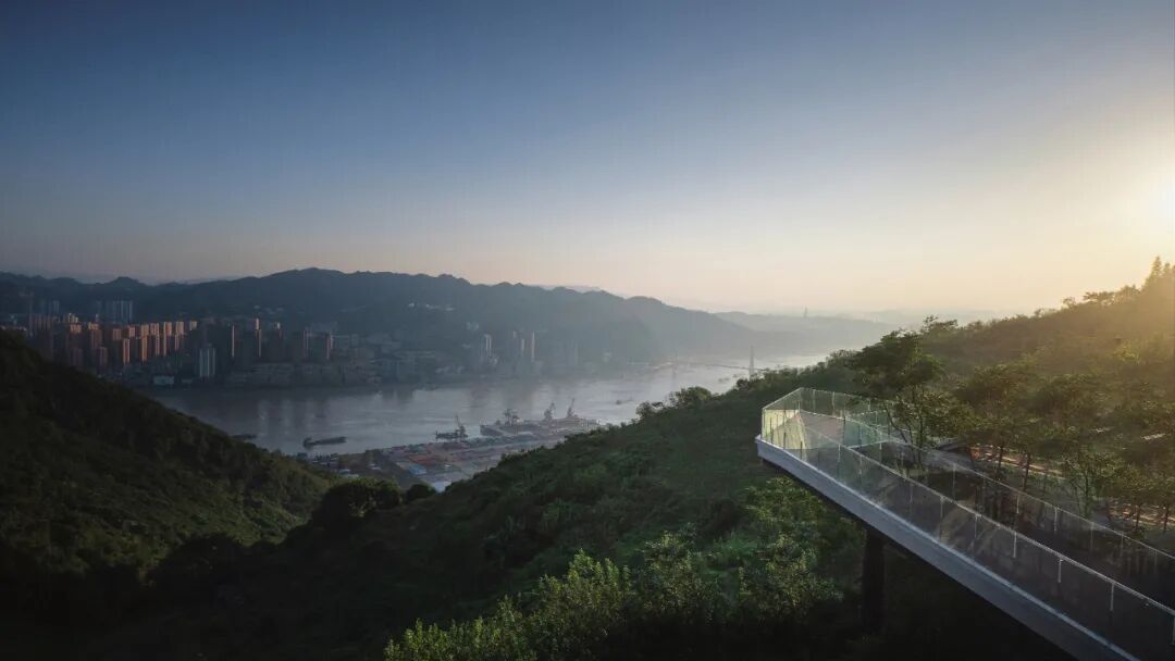 山和水,是场地最宝贵的自然资源。而设计所做的就是在这视野最佳的观景点,创造了一处人与山水情感连接的纽带。通过设计的空间、路径和情绪的带动,设计师希望创造的是精神层面的自然,是人们感知山与水时,思想的波澜和迸发。“星空廊桥”是场地与城市,建筑与自然,现在与未来之间的联系纽带,通过廊桥的延伸,看见无限远方。