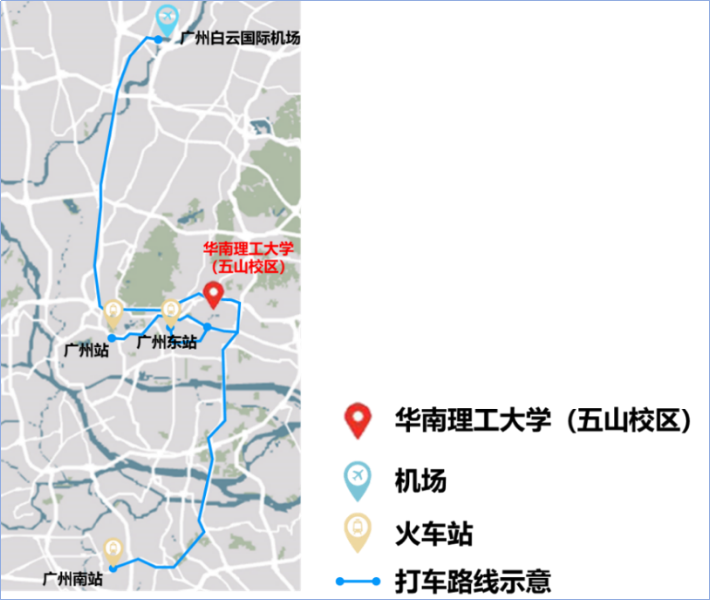 (1)飞机:广州白云国际机场——华南理工大学(五山校区)