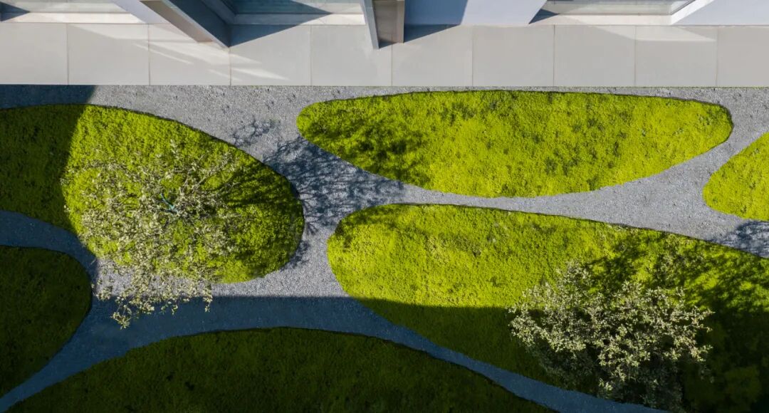 进深5米的小庭院,作为室内空间的适当延伸,以安静优雅的气质出现在人们眼前,是为室内让出的一道天光,也是对未来绿色森林生活的描摹。
