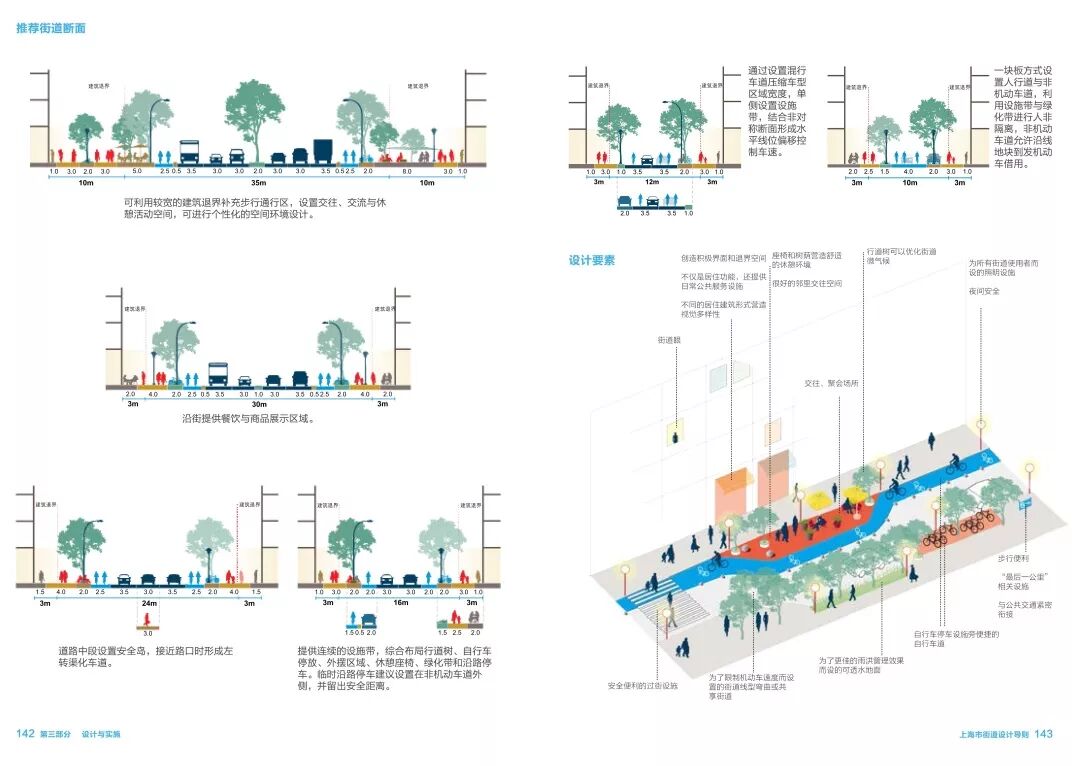 《上海城市街道设计导则》中的“推荐街道断面”内容 © 原上海市规划和国土资源管理局
