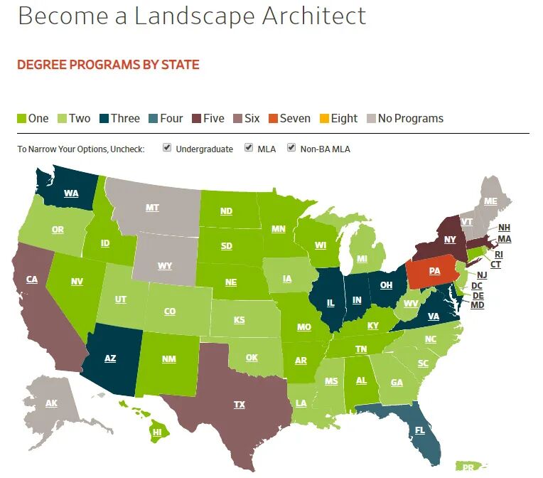 美国各州院校课程地图 © ASLA