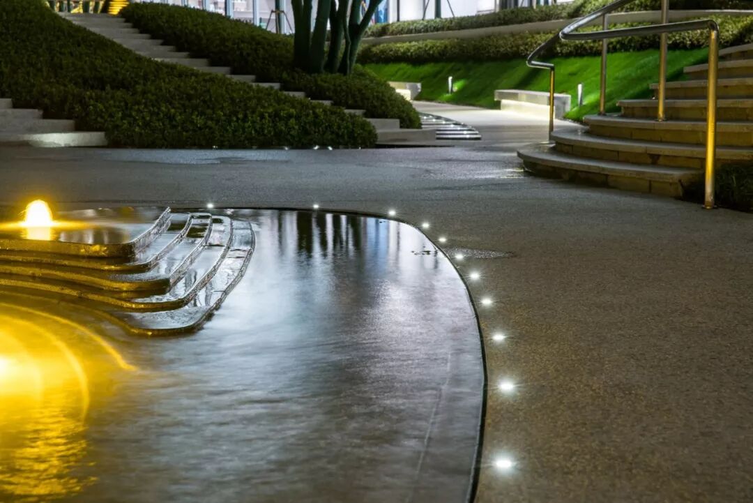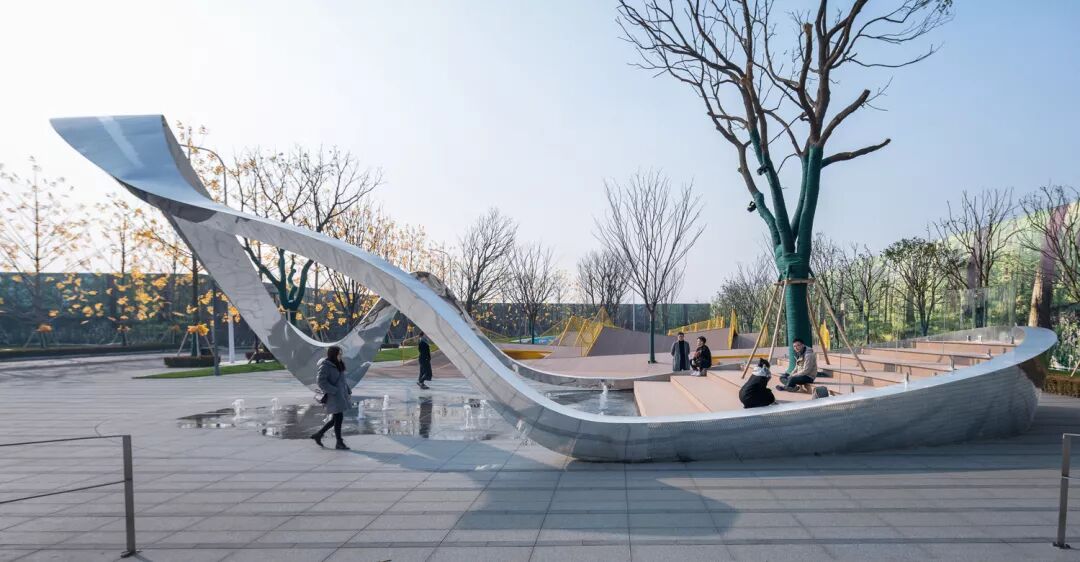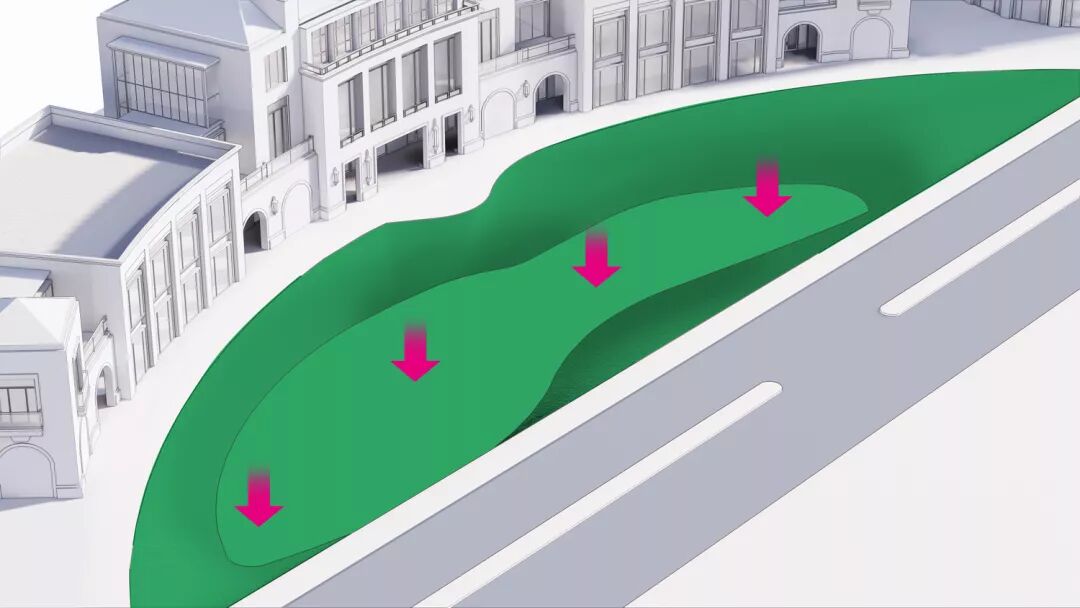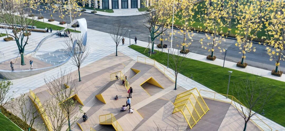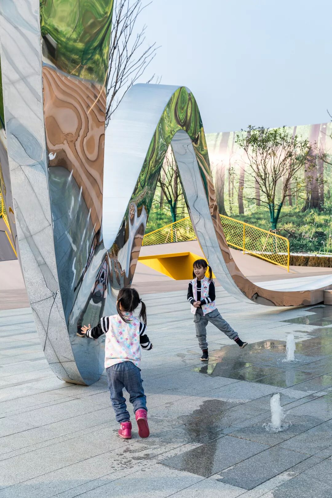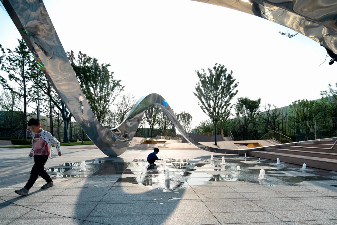 △ 下沉空间的广场里可以嬉戏的微地形水景