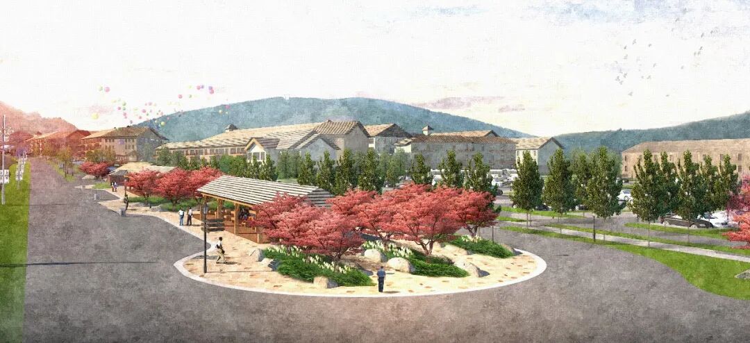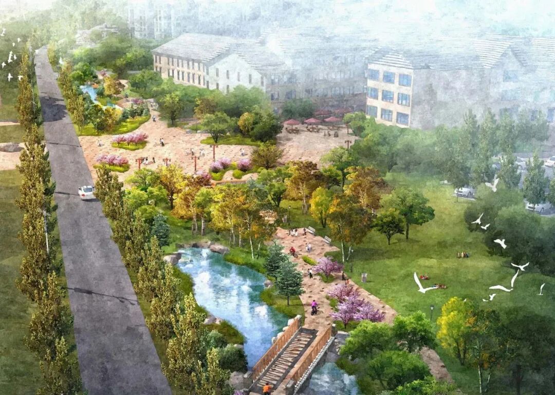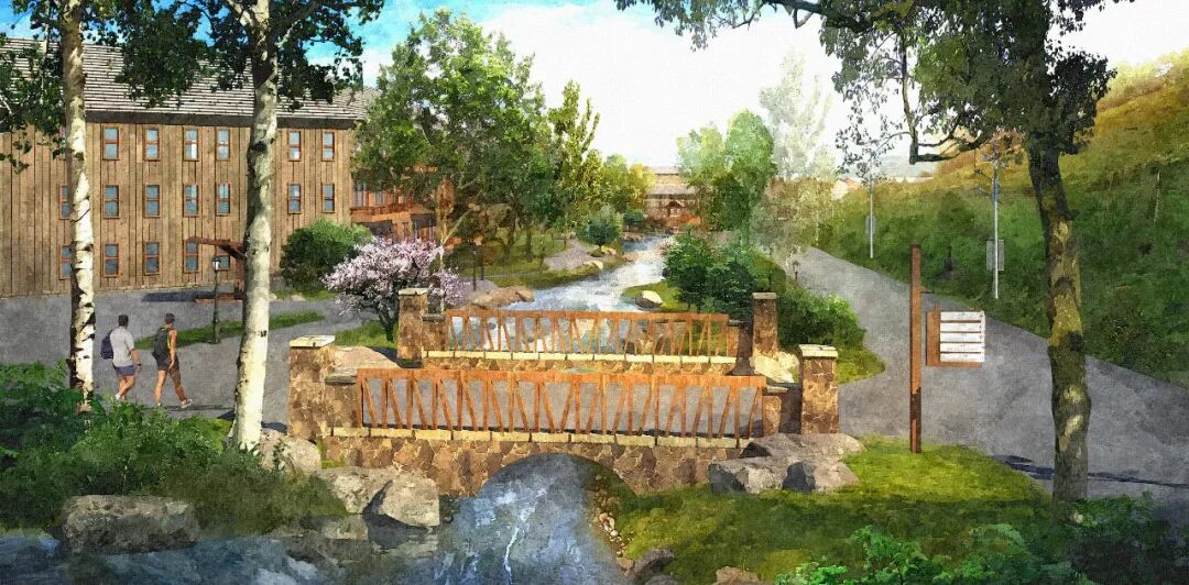绿道公园从太舞小镇一直延伸至景观湖,沿途分布有缆车站,青年公寓和北美商街,呈现出游览、居住、商业等各种业态。整个场地的限制不仅来源于气候和管线等物理条件,场所的应用生态同样复杂。我们根据业态为不同区段设定了主题,随着主题和周边业态的功能需求设计不同尺度的公共空间,而在自然生态的基调下有一些风格的过渡。绿道公园就像一个融合剂,衔接不同业态,为丰富业态带来的丰富四季活动提供空间。