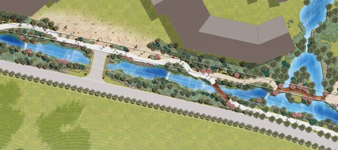 所以太舞生态绿道公园不仅是一个线性的公共空间,更重要的功能在于适应雨水径流变化、管理雨洪并以自然生态的方式排到景观湖中。