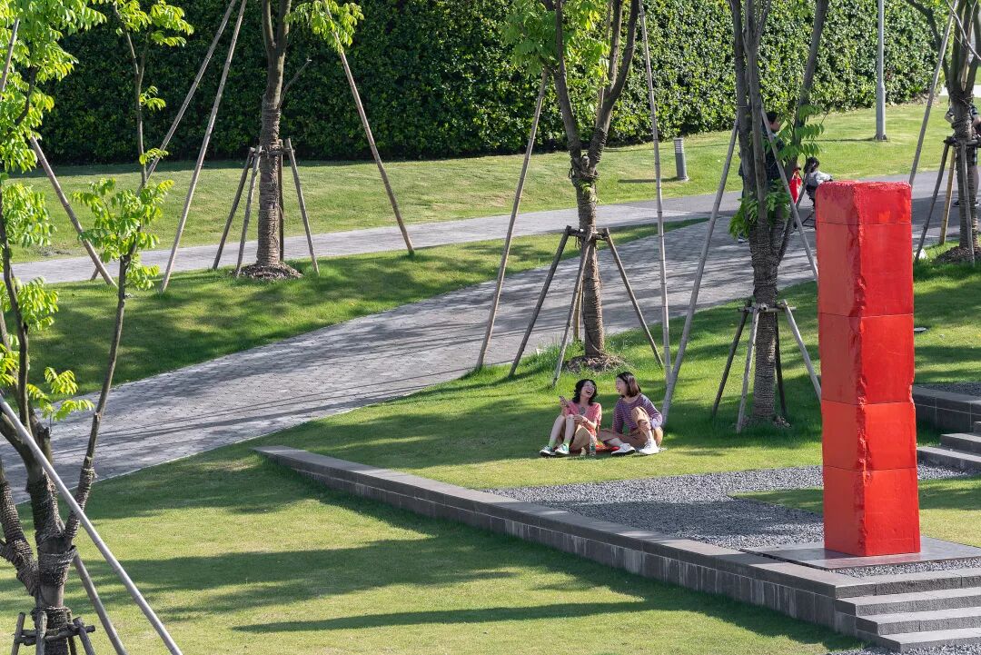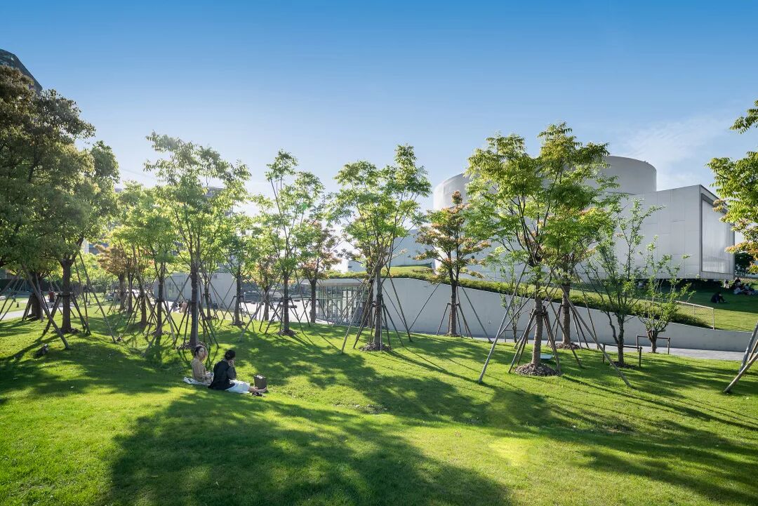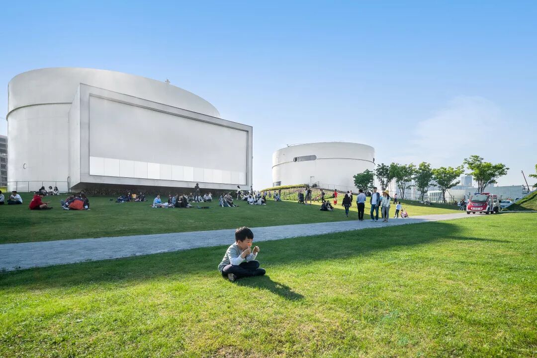 “油罐”周边经过改造设计了大片的绿地空间,沟通了城市界面与滨江休闲界面之间的关系,成为受到市民欢迎的公共区域。